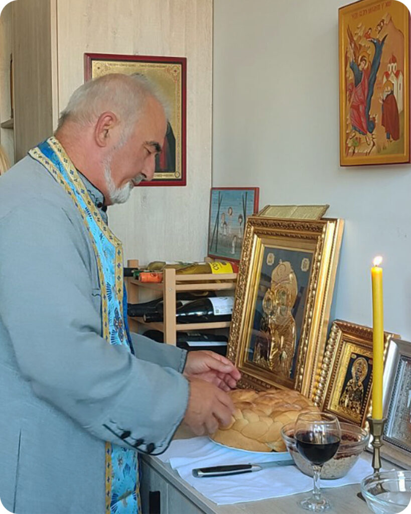Rezanje slavskog kolača obavio je protonamesnik otac Zoran Kerezović u prisustvu rukovodstva, zaposlenih i prijatelja naše firme.